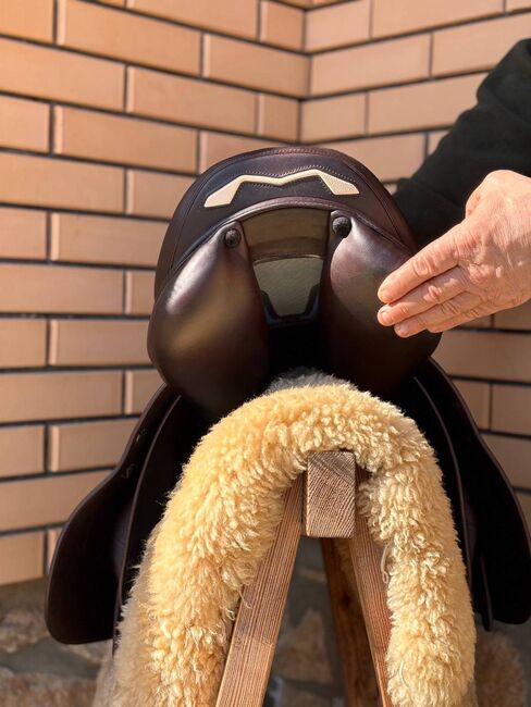 Dieser hochwertige 17-Zoll-Sattel vereint erstklassige Handwerkskunst, Langlebigkeit und optimalen Reitkomfort. Gefertigt aus hochwertigem Leder, überzeugt er mit einer glatten, edlen dunkelbraunen Oberfläche, die nicht nur besonders elegant wirkt, sondern auch für den täglichen Gebrauch ausgelegt ist und mit der Zeit eine schöne Patina entwickelt.