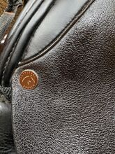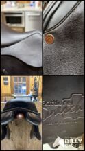 I purchased this custom saddle with buffalo leather in a dark chocolate brown. 17.5" Standard Centennial, twin flap; Rolls on velcro; Brown Remy Hide seat, roll cover, piping, cantle, and front & back facings; Brown Buffalo skirt and flaps; 12.5" flaps. This saddle is in perfect, like new condition but nicely broken in! Paid more than $7k new.