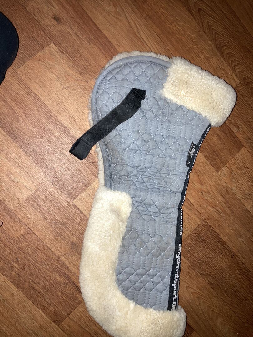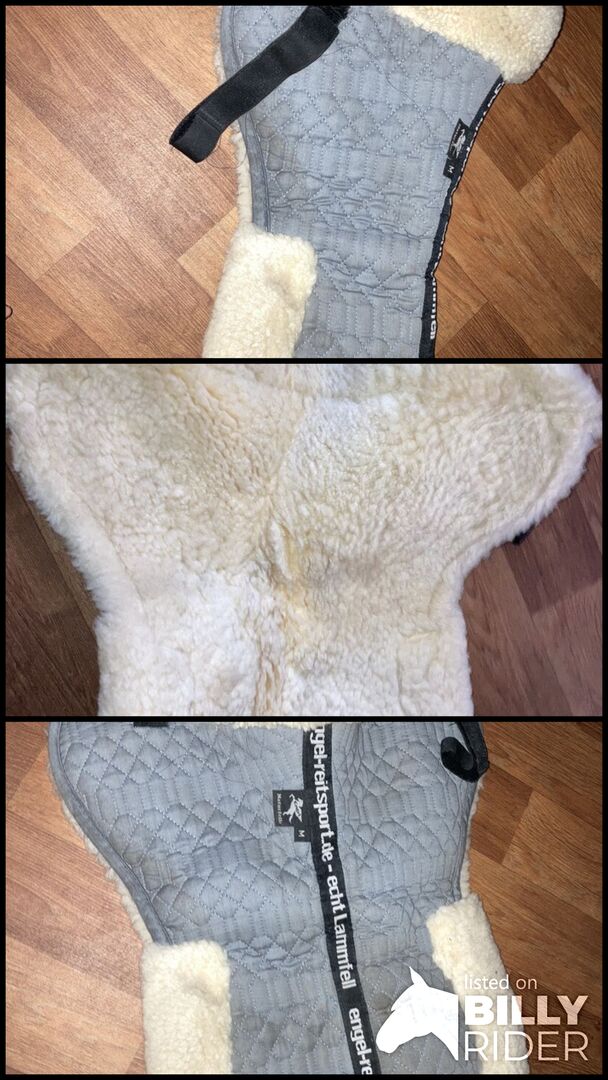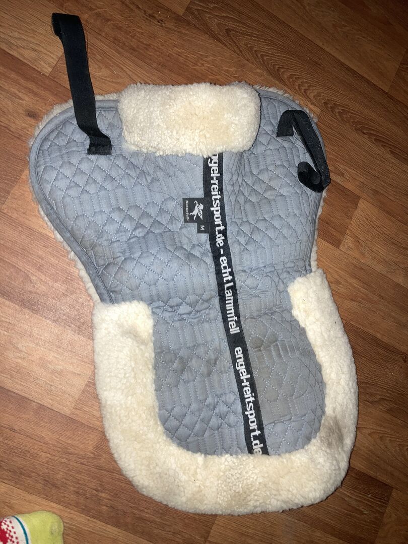 Engel sadelkudde för hästar i grått - Jag säljer mitt begagnade schabrak i grått i storlek M. Schabraket är tillverkat av slitstark bomull och merinolammskinn. Schabraket har en lammskinnskant fram och bak. Det finns inga skador på panelen.
