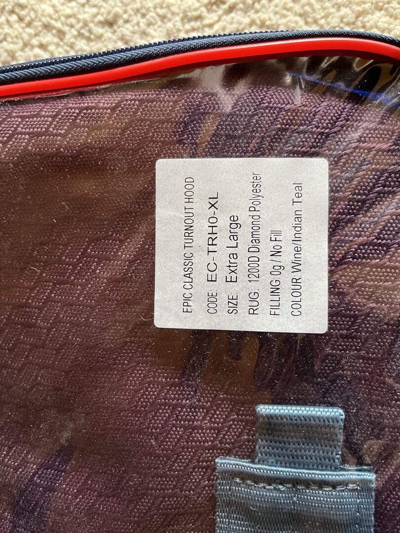 Det har en materialtjocklek på 1200 Den och är därför mycket stabilt. Färgen är aubergine med petrolblått runt kanterna, så det passar bra till mörka hästar.