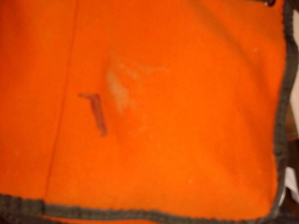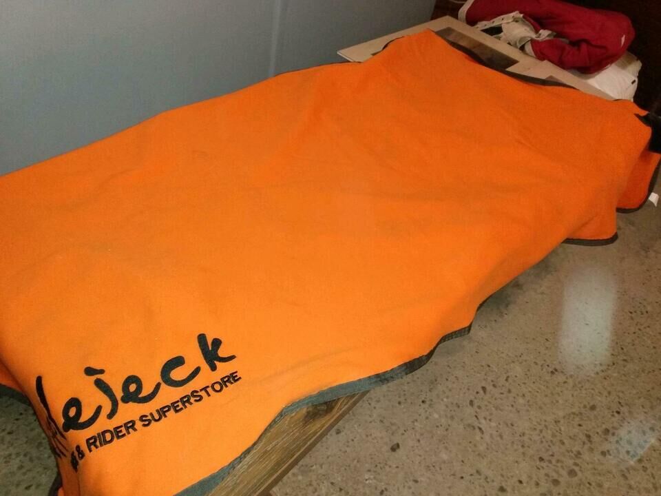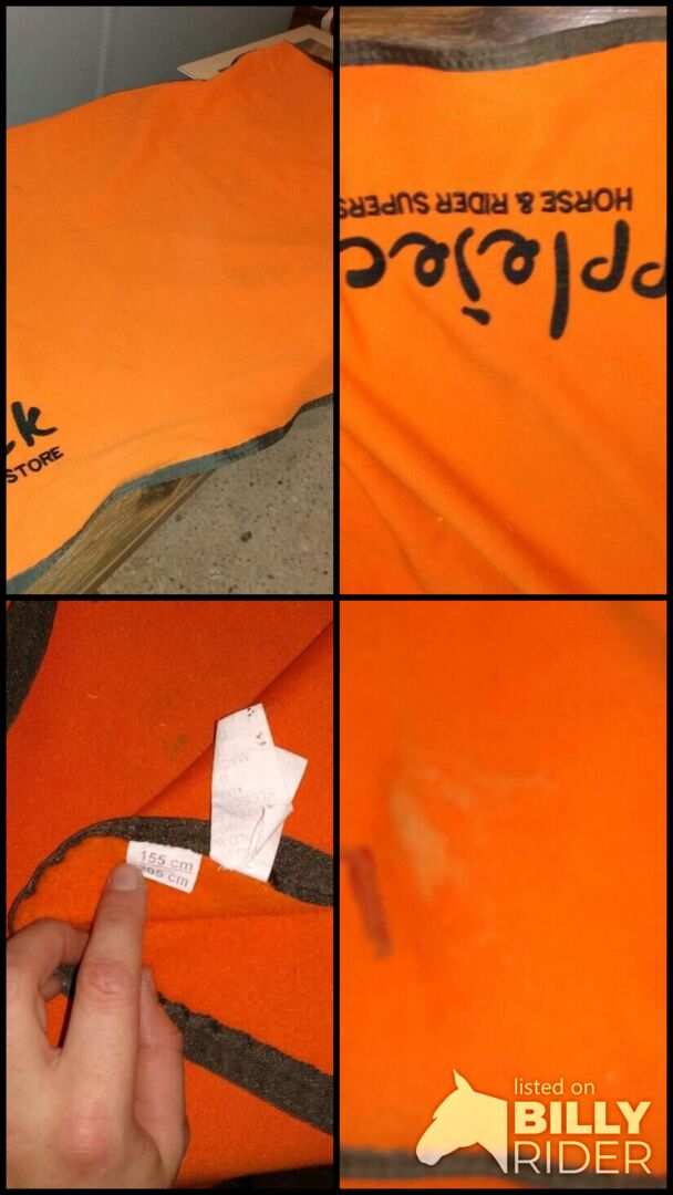 Epplejeck Sweat Rug orange 155cm - Vacker svettmatta från epplejeck i behagligt ljus, inte skrikig orange. 155cm, bröstförslutning och krampbyxa. Inga magband. Mycket gott skick, inga skador, inga hål. Det finns dock en liten vaxfläck eller något annat som jag inte kan få bort, men som inte är märkbar, se sista bilden. Med lite ansträngning är jag säker på att du kan bli av med den.