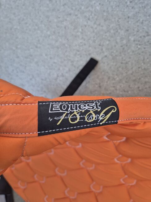 Jag säljer mitt helt nya dressyrschabrak från Equest i färgen orange. Tyvärr tycker jag inte om färgen på mitt bruna sto, så jag vill gärna sälja den. Schabraket är så gott som nytt, har varit på hästen en gång och säljs tvättat.