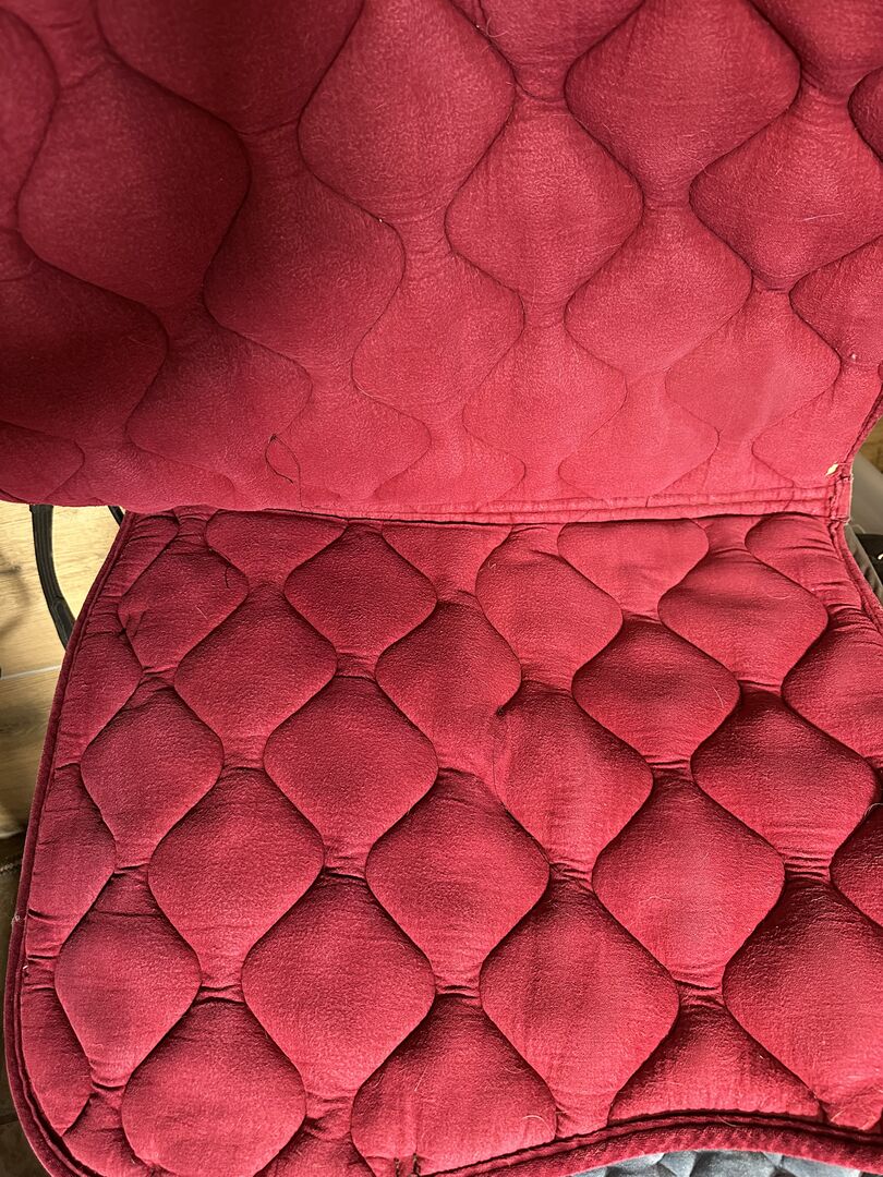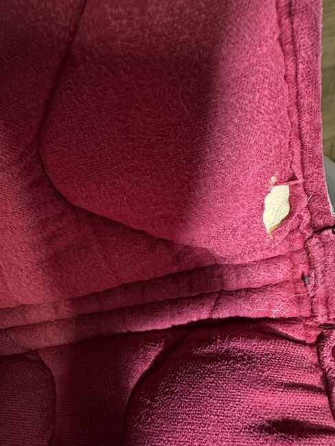 Equest schabrack Bordeaux, flughuva Anky Soundproof - Köpt begagnad, aldrig använd av mig. Schabraket har ett litet hål på undersidan, se bilder. Storlek dressyr och WB. Sadelunderlägg 10 Flyghätta 10€ Tillsammans 15