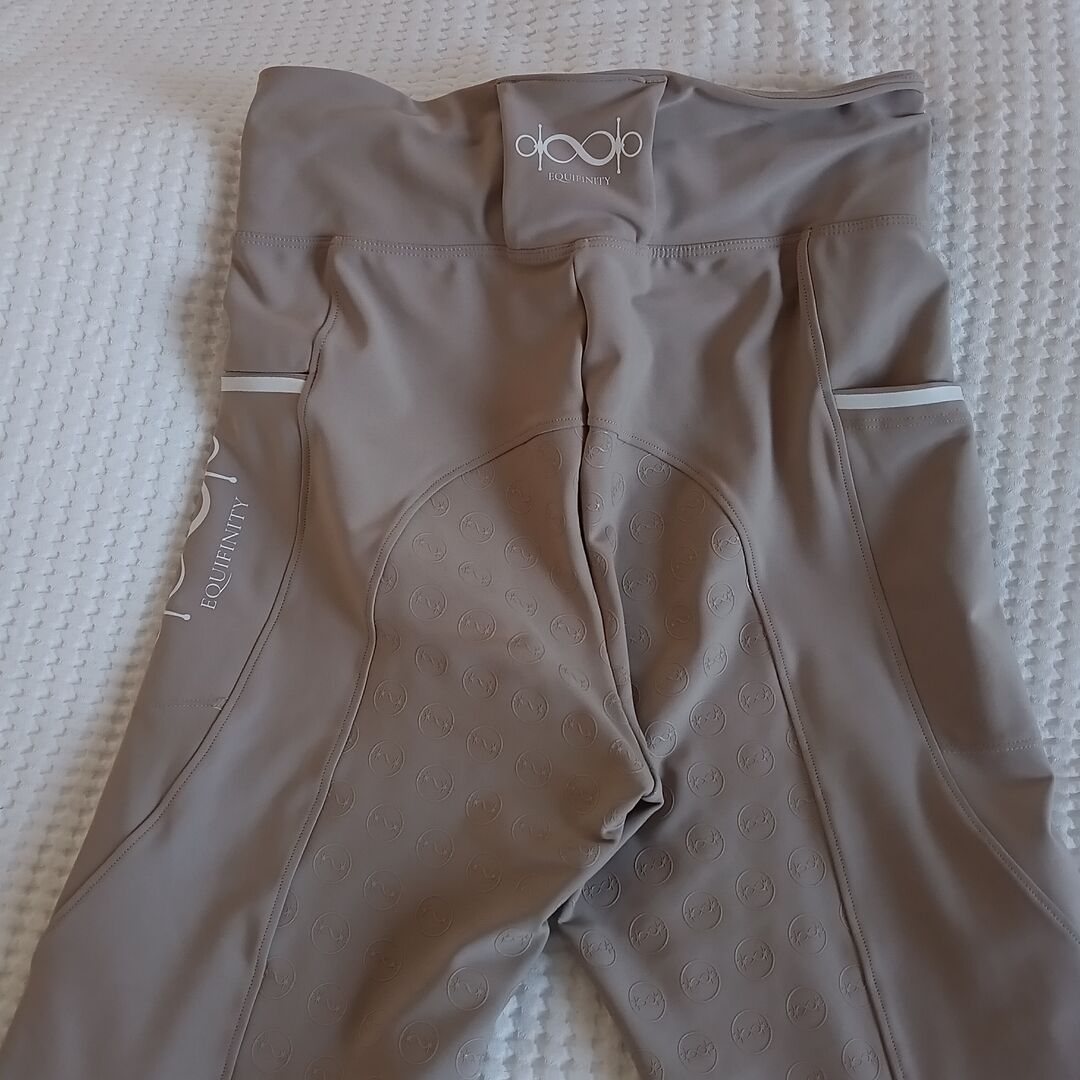 Equifinity ridleggings storlek L - Supersköna ridleggings i champagne storlek L. Hög midja, bekväm att bära tack vare 4-vägsstretch. En absolut favorit eftersom de inte klämmer någonstans.