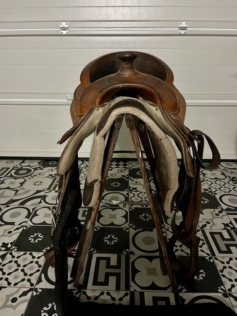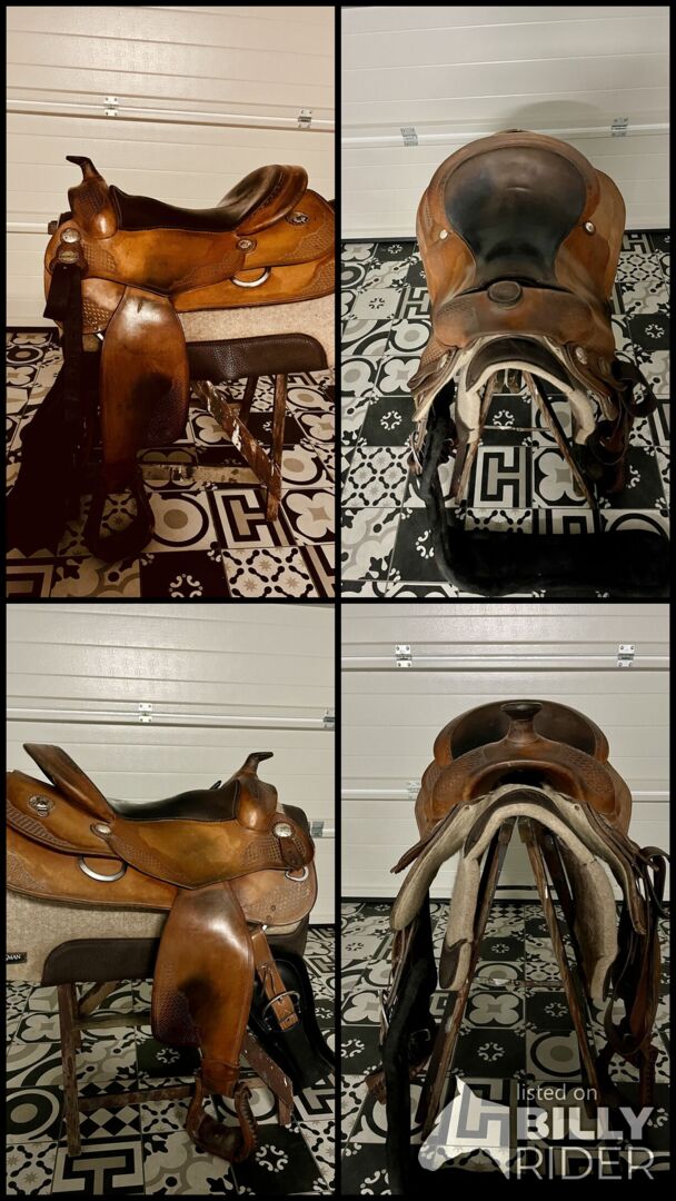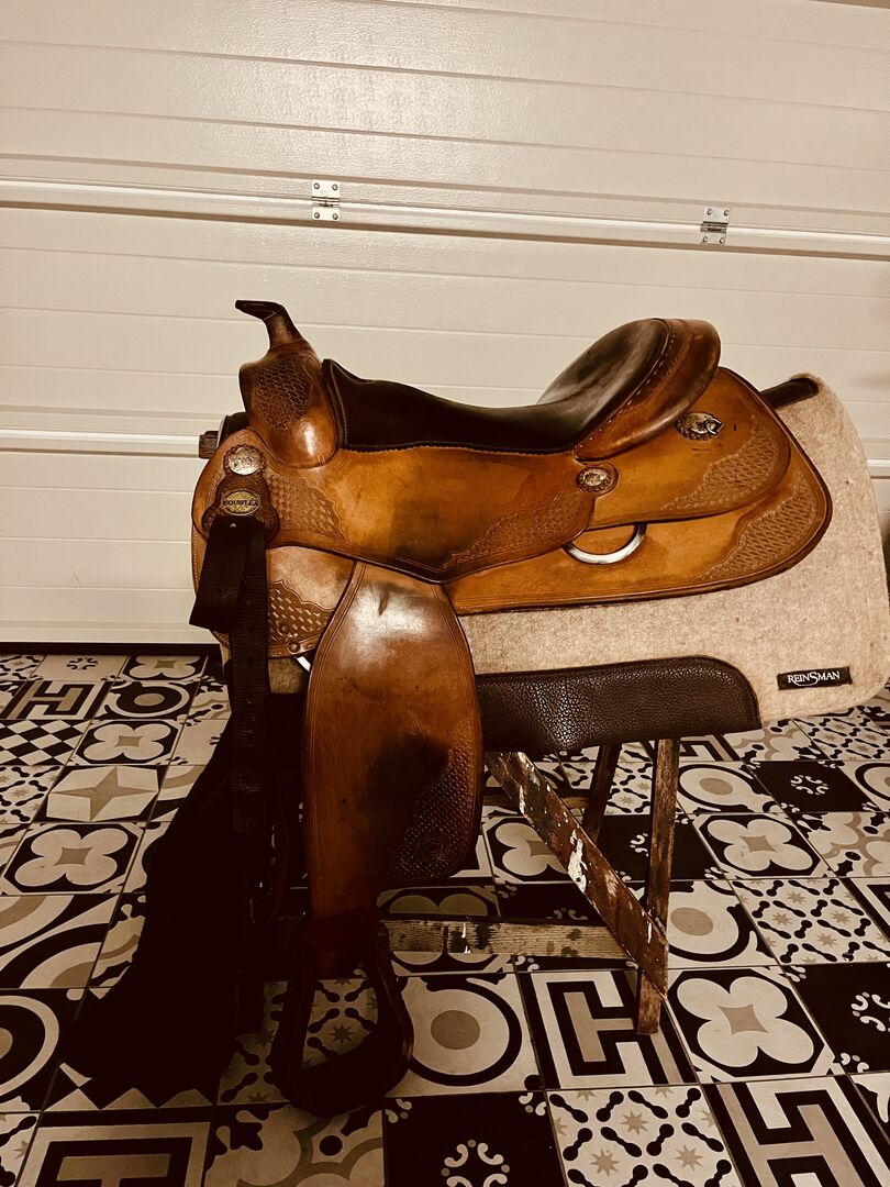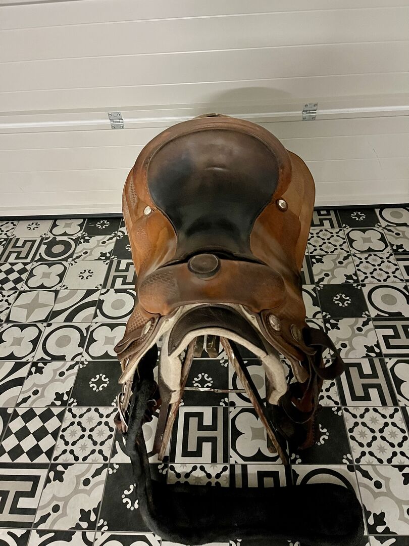 Equiflex Western Saddle - Jag säljer min Equiflex western sadel då jag tyvärr inte längre kan rida min häst på grund av min ålder. Sadeln är i gott skick med de vanliga tecknen på slitage. Medföljer gör det avbildade westernunderlägget från Rainsman (behöver fortfarande rengöras) och en ny sadelgjord (använd två gånger). Om möjligt bör sadeln samlas in lokalt