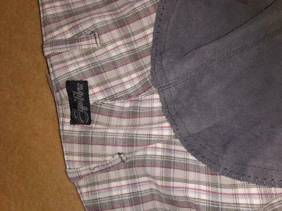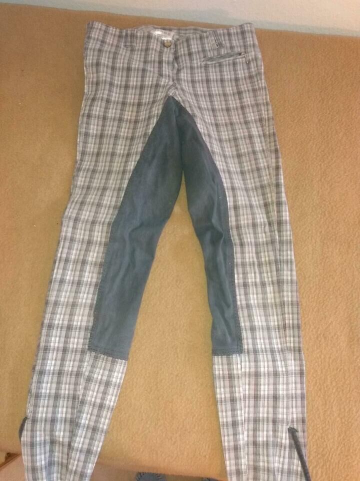 Equilibre full sits ridning byxor imitation läder storlek 38 grå rosa vit - Mycket bekväma, robusta byxor från equilibre. Rutig, rosa, vitgrå och ljusblå. Storlek 38, med dragkedjeficka och kardborreband i nedre delen av benet. Används med glädje och kan inte brytas. Frakt är möjlig om kostnaderna betalas. Privat försäljning, därför ingen retur eller garanti.