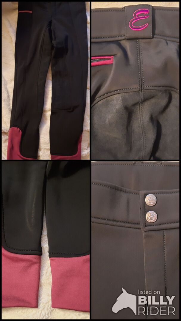 Equilibre - Termobyxor för barn med hel sits-Gr.176 - TILL SALU: - NEWWARE värmande ridbyxor (svart/bordeaux) för barn med hel sits och extra bred midja-GR. 176 - vindavvisande material, perfekt för kalla dagar, - med praktisk mobiltelefonficka på sidan, - - - flexibla benslut, - utsida 88 % polyamid, 12 % elastan. Insida 100 % polyester, - kommer från ett husdjursfritt, rökfritt hushåll, - frakt möjlig om kostnaderna betalas!
