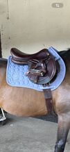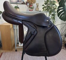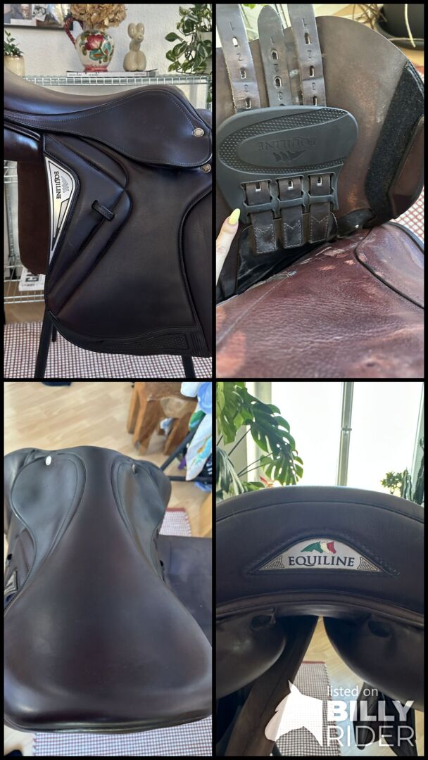 Equiline sadelstängare 18 tum - Jag säljer min Equiline-hoppsadel "Closer", som jag alltid har tyckt om att använda. Den satt på mitt 1,65 m långa tyska varmblod och har följt oss under många härliga år. Tyvärr har jag nu köpt en ny sadel, så den här går vidare. Sadeln är superbekväm och ger ett mycket bra stöd, särskilt vid hoppning. Den har en sitsstorlek på 18 tum och en medelstor kammarbredd (M), den har breddats en gång. Lädret är mjukt och av hög kvalitet, typiskt för Equiline, och har alltid varit väl omhändertaget. Det finns naturligtvis små tecken på slitage, men totalt sett är sadeln i mycket gott skick. Knärullarna är också justerbara med kardborreband, så du kan enkelt justera den. Jag har alltid förvarat den väl och skyddat när den inte används. Frakt är möjlig mot en extra kostnad, alternativt kan den naturligtvis också hämtas. Betalning är möjlig via banköverföring eller kontant vid upphämtning.