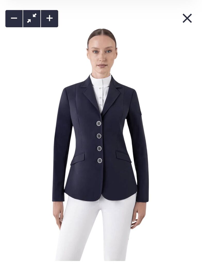Equiline tävlingsjacka för damer som ny - storlek S - blå - Jag säljer min mörkblå Equiline tävlingsjacka "Gait X-Cool Evo" i storlek S. Jag har haft den i ett år och har bara använt den 4-5 gånger. Jackan är som ny, utan defekter, fläckar eller hål, men jag måste fortfarande tvätta och stryka den.