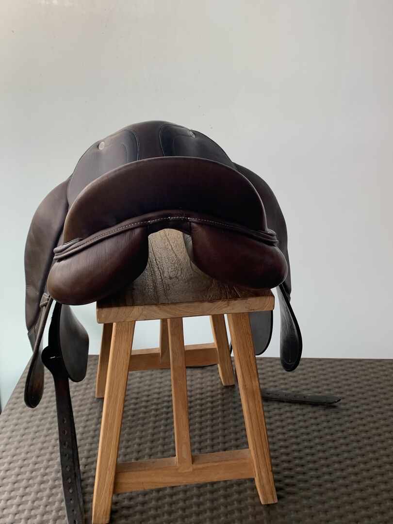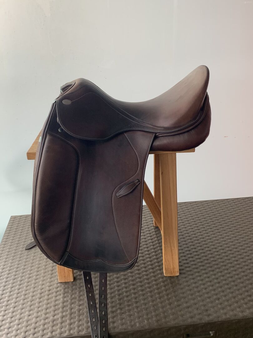 till salu - Säljer en mörkbrun Equinomic dressyrsadel.