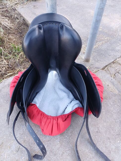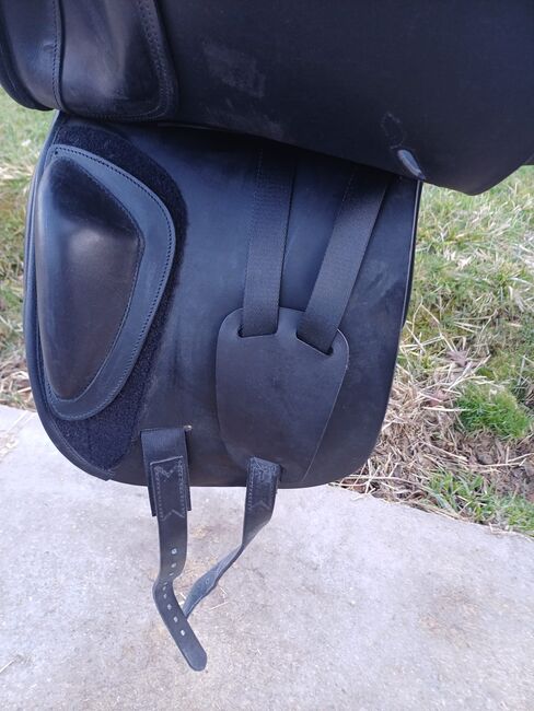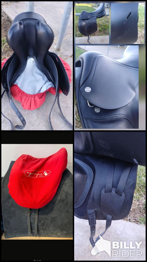 equipe dressyrsadel, modell Oracle, 18 tum, toppskick - Jag säljer min dressyrsadel, som bara har använts lite. Den användes bara i några månader. Knärullarna är justerbara med kardborreband. Sadeln kan skickas på begäran och med deposition av försäljningspriset. Vänligen kontakta mig om du har några frågor.