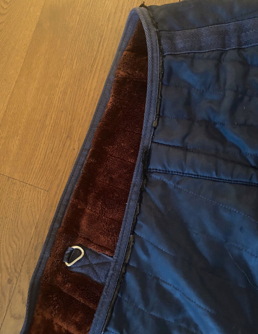 Equitheme Stable Blanket Vintertäcke med lammskinn Storlek 135 - Hej , Vi säljer en välbevarad Equitheme filt i storlek 135 med lammskinnskrage. (Se foton för tecken på användning) Rygglängd 135 cm. Stallmatta med krage av syntetiskt lammskinn, 200 g/m² stoppning, foder av polycotton. Lågt satta korsbågar och svanssnöre. Dubbla justerbara clipsfästen framtill, som dessutom är försedda med kardborreband. Perfekt för stallet eller som transportfilt. Sammansättning: 100 % polyester.