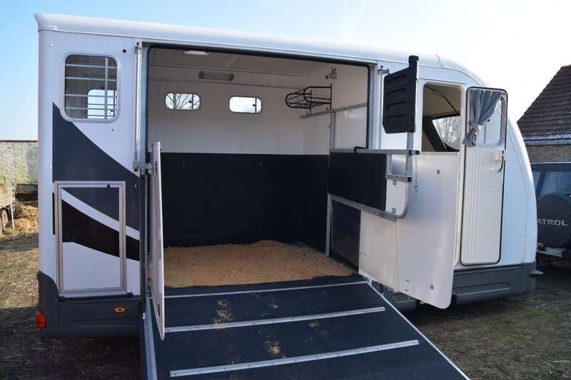 EQUITREK Star-Treka - Excel - Hästtransport med bodel - Med ett tungt hjärta säljer jag en ny EQUITREK Star-Treka i den översta Excel-versionen på grund av utvandring, eftersom vi tyvärr knappast använder den längre. Släpvagnen är alltid under skydd. ECE-homologering innebär problemfritt godkännande i EU! Tillägg till Excel-versionen: Säten i läder Version med sittgrupp (dubbelsäng) "Högblanka" ytor Det nya priset för denna version är över 33000. Utrustning: Exteriör: Aerodynamisk front i glasfiber Reservhjul och fäste Chassi i galvaniserat stål Låsbar koppling Oberoende fjädring Sex helt bromsade hjul Tillverkad i ISO9001-fabrik Stort förvaringsutrymme framtill Två yttre fästringar Vardagsutrymme: Kylskåp Elektrisk toalett med spolning Stor innerbelysning med extra strålkastare Tre öppningsbara fönster och takventilation med skylight Pentry Toalettutrymme Matchande gardiner Stort fönster fram Elektrisk vattenförsörjning Batteri för fritid Speglar Område för hästar: Ljus och rymlig interiör Vadderad bröstbåge i full bredd Stöttlister i komposit med hög slagtålighet Stabila golvplattor i aluminium Halkfri ramp i gummi Två sadelhållare och två tränshållare Paneler av komposit Justerbar skiljevägg med PVC-förkläde till golvet Separat område för hästar Extra ventilationsfönster Groomingutrymme med belysning Sadelkammare med belysning Avdelare för huvud Vita säkerhetsdörrar som är lätta att rengöra Klädsel för skiljevägg Dusch för hästar Två fästringar för häst- och hönät Fem öppningsbara fönster med takfönster och takventilation Invändig belysning Övervakningskamera Hjulklämma (stöldskyddsanordning) Extra bakljus