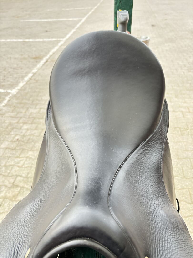 Ergo Saddlefit dressyrsadel - Dressyrsadeln ESF Gold från sadelmakeriet Hennig är inte bara en fröjd för hästen, utan även för den känsliga ryttaren. Sadelträdet har utskärningar i området kring blygdbenet och i höjd med sittbensknölarna, som har fyllts med skum för att förhindra tryck. Det är en sadel med monoklaff tillverkad av dubbelt läder