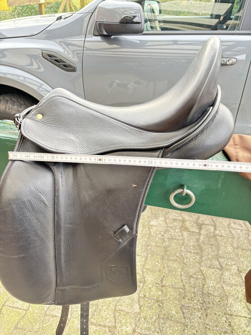Medelbred kammare - kall justerbar Passform: för hästar med mycket bog och en rak rygglinje Mycket välskött skick Dubblerad kohud och kalvskinn Kilkudde fylld med ull Pommeller med kardborreband Djupt säte Långa gördelremmar Nytt pris: 4700€