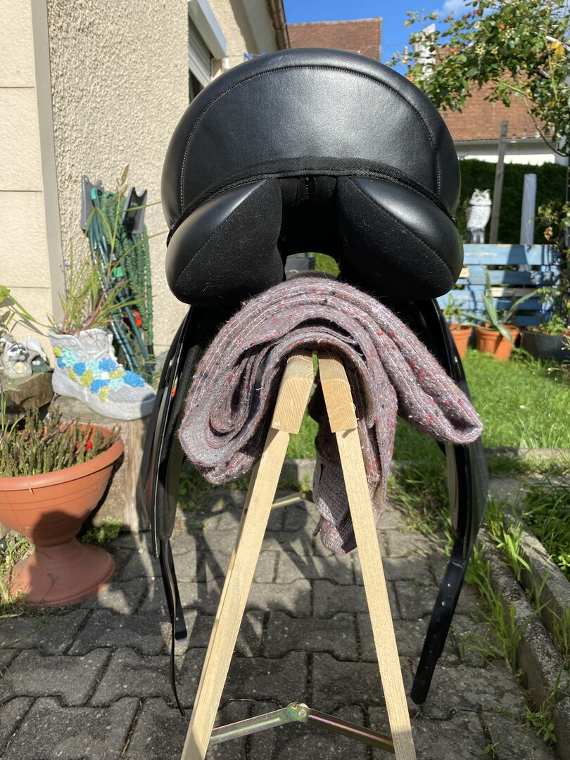 Eric Thomas dressyrsadel - Här erbjuder vi en mycket välbevarad - lite ridit - syntetisk sadel av Eric Thomas.