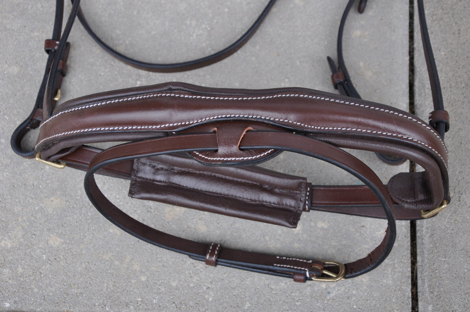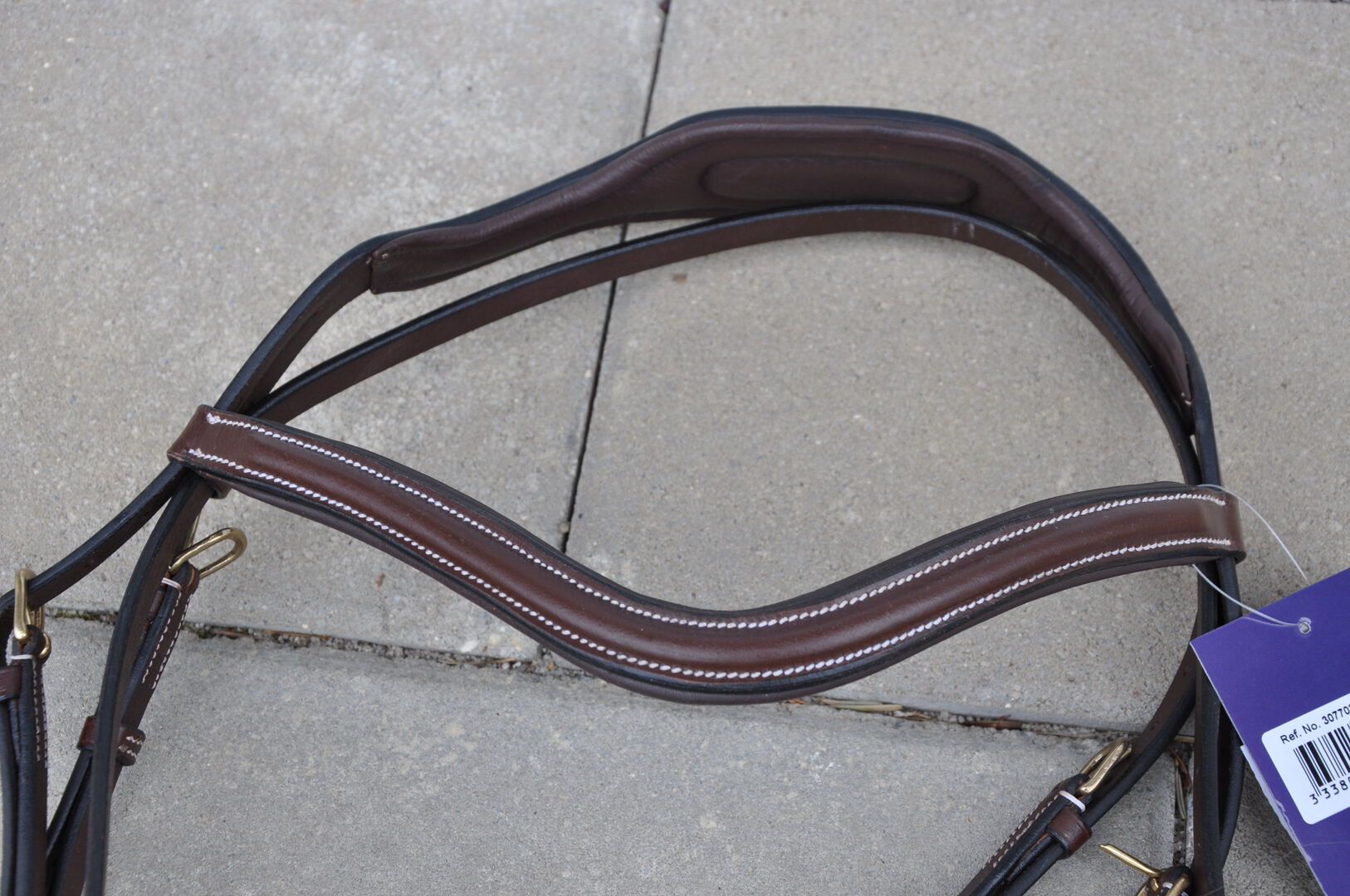 Träns i buffelläder med brett anatomiskt huvudstycke, "V"-format pannband, kombinerat nosband med mjukt foder i kohud.