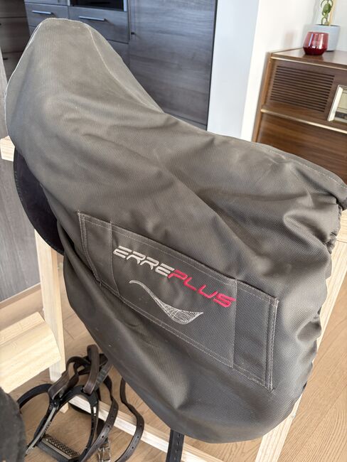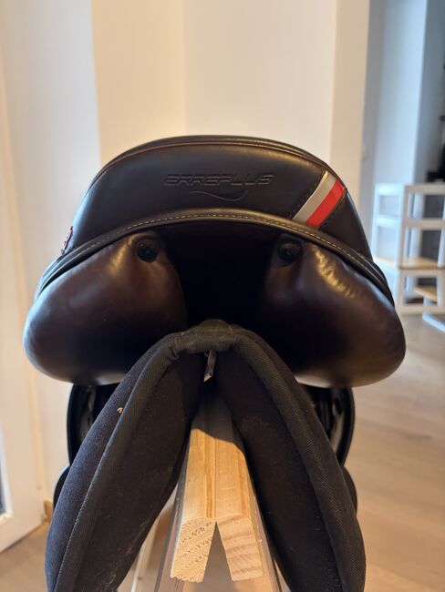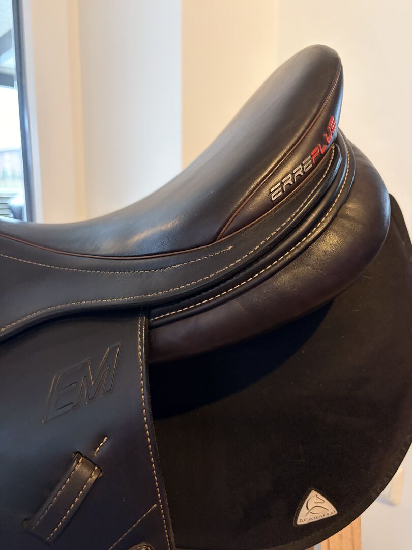 Erreplus fälttävlan mono hoppsadel/ fälttävlan - Till salu här finns en Erreplus Eventing Mono sadel i mycket gott skick i mörkbrunt med vackert kontrasterande dekorativa sömmar.