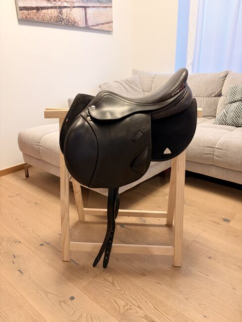 Den perfekta sadeln för fälttävlan och hoppning, mono flap, open points, mycket axelfrihet och en sits som känns extra nära hästen.