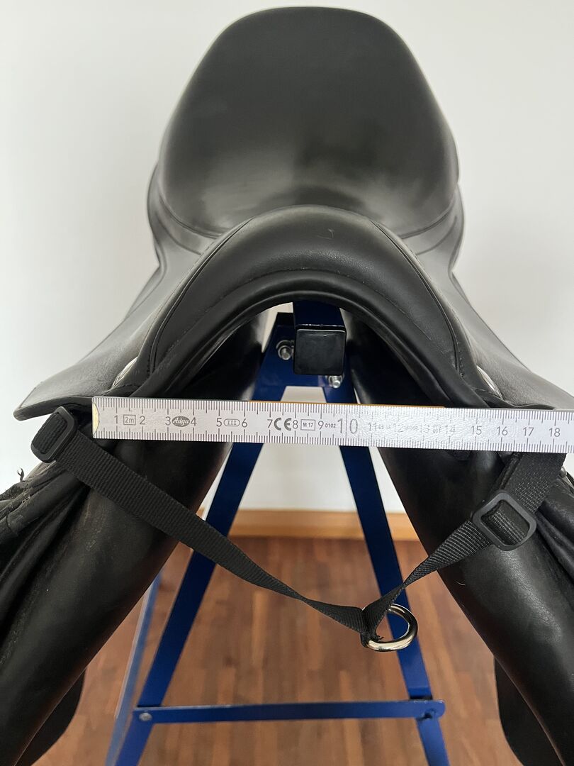 Sadeln hade en liten spricka i det främre området, orsakad av bröstplattan. Detta reparerades professionellt av sadelmakaren - se bild. Funktionaliteten och utseendet påverkas inte av detta.