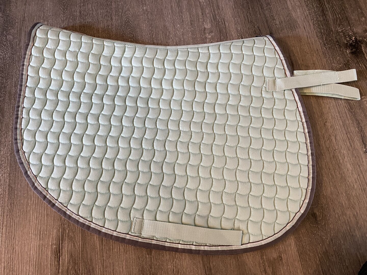 Jag säljer ett nytt sadelunderlag från Eskadron. Det är en Cotton i färgen Jade i storleken Warmbljt SR (hoppning). Färgen är lite svår att fotografera, men på det sista fotot är den ganska färgbeständig. Sadelunderlaget låg bara en gång kort under sadeln, för att sedan konstatera att det inte passar under min sadel, eftersom det är ganska långt skuret vid fliken. Därför kan den tas av igen.
