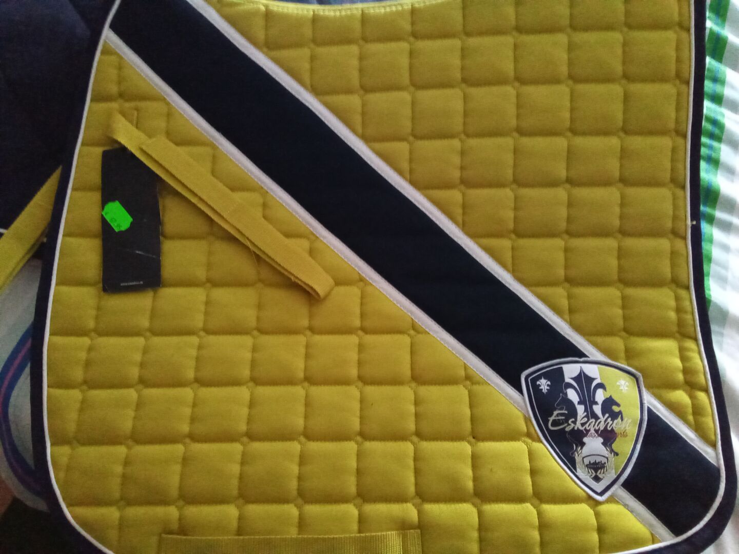 Eskadron Dressage Saddle Pad - Jag säljer detta oanvända sadelunderlag eftersom jag har för många. Etiketten är fortfarande på. Färg Jag skulle säga senap med mörkblå. Frakt och samling möjlig