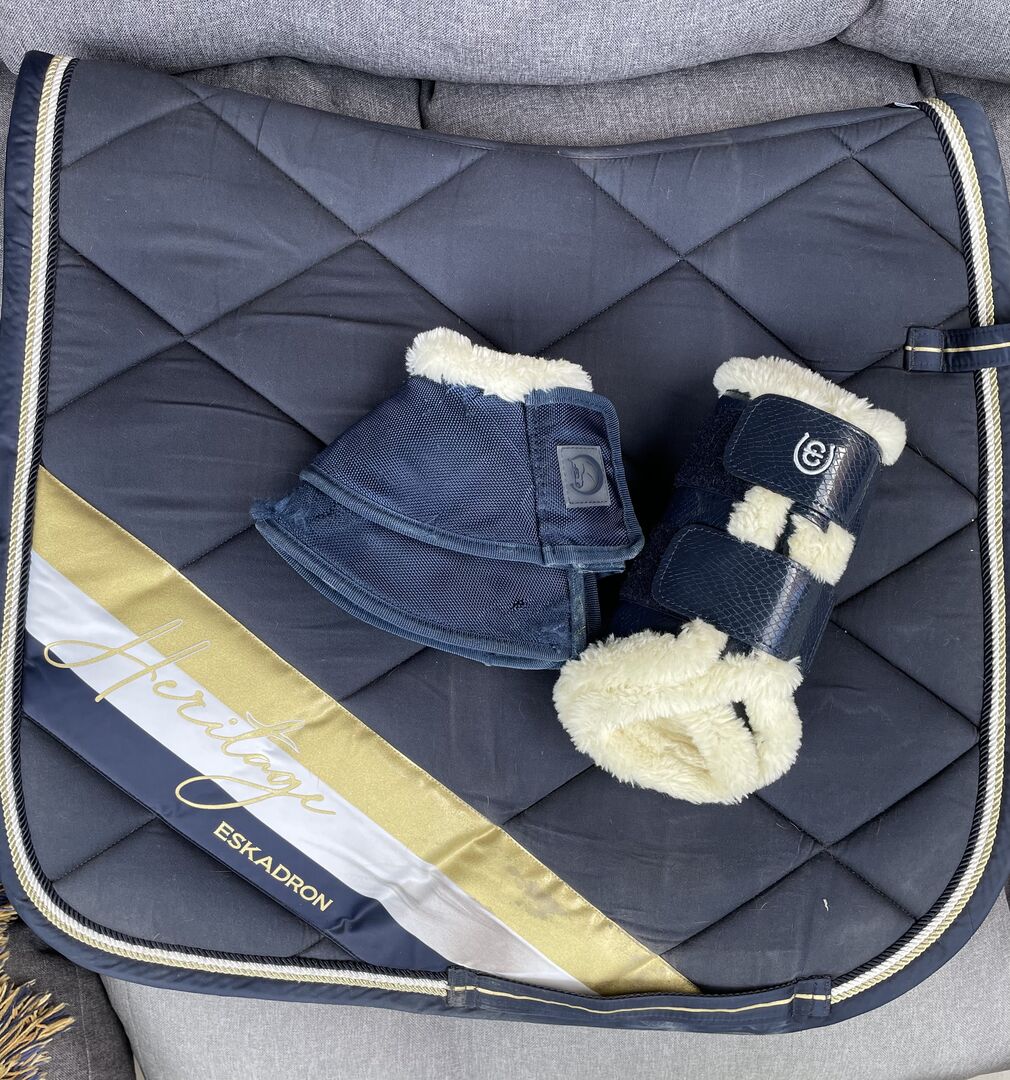 Säljer detta set från Eskadron i marinblått med damasker från Equestrian Stockholm.