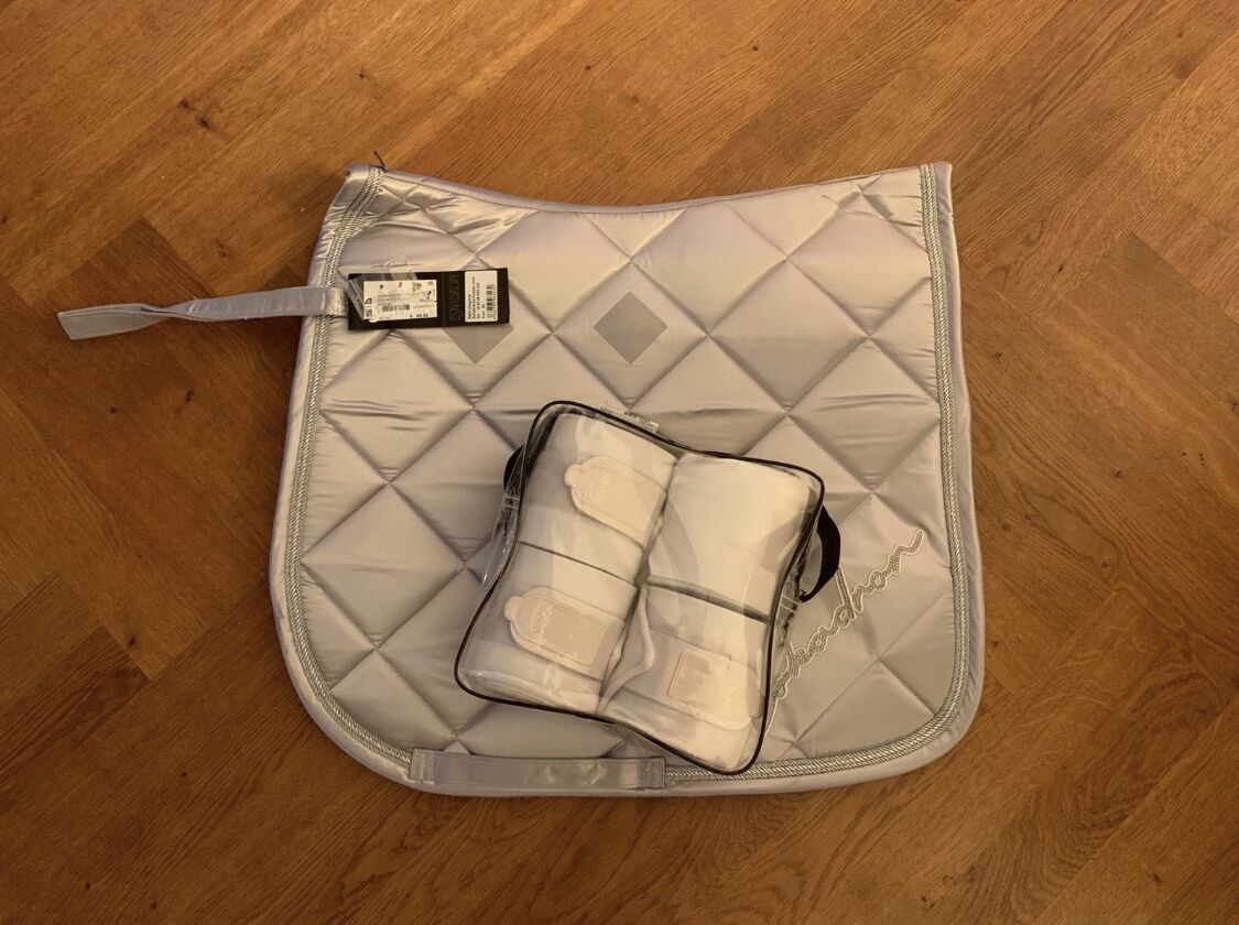Eskadron Holo Set i vitt silver - Säljer nytt med etikett Eskadron-set bestående av sadelunderlag och bandage.