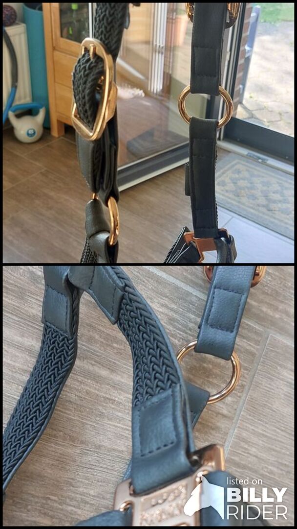 Eskadron läder halster - Till salu en svart och guldfärgad läderhalster från Eskadron. Storlek ponny