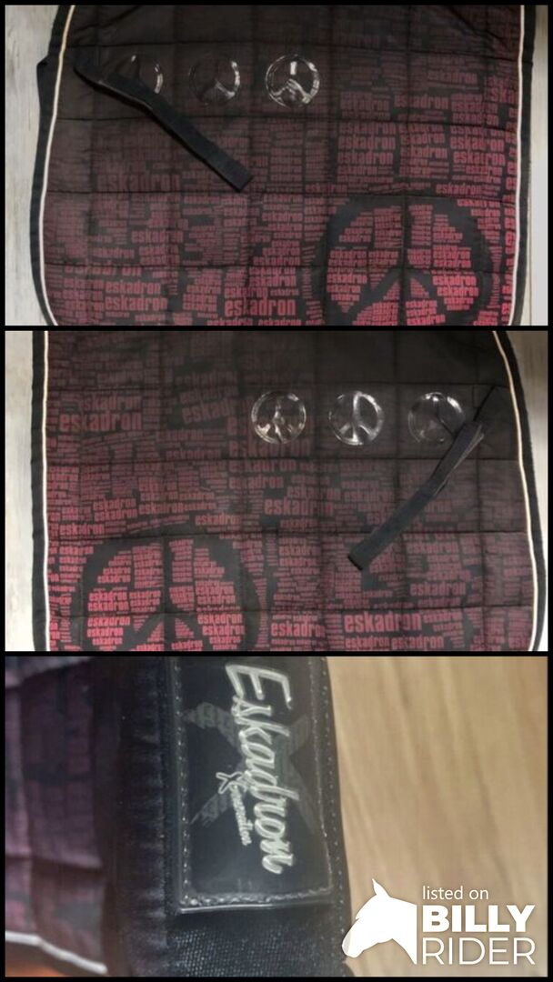 Eskadron Peace Saddle Pad - Storlek: Wb/Dl Varumärke: Eskadron Skick: begagnad, sydda områden på bältesdelen. Men inte synlig under sadeln Färg: Marinblått, rosa