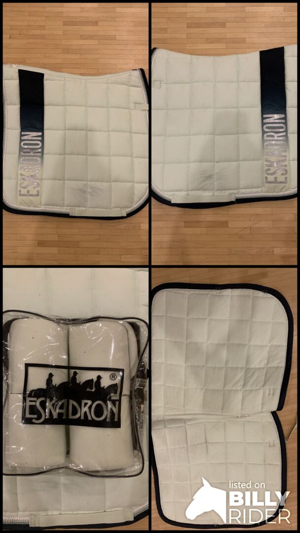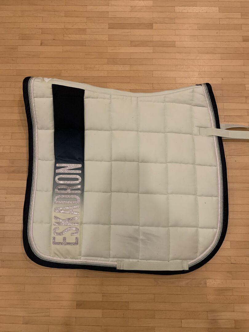 Eskadron Saddle Pad DL - Jag erbjuder ett dressyrsadelunderlag från Eskadron med matchande bandage i storlek WB. Sadelunderlaget och bandaget är från New Generation-kollektionen 2018 i spearmint och är i mycket gott skick. De enda spåren av användning är små märken från sadeln (se bild).