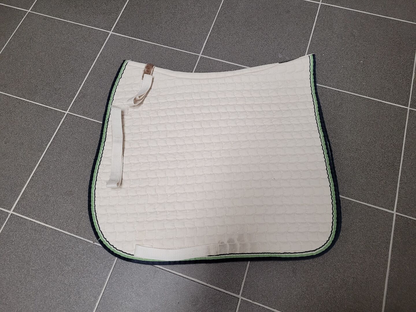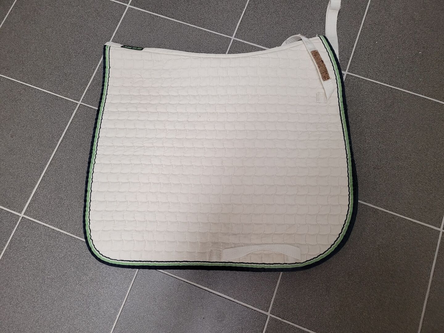 Eskadron Saddle Pad DL - Vit Eskadron-sadelunderlag . Är inte längre helt ren på insidan. Kardborreknäppningarna är inte heller längre rena, men de sitter fortfarande bra fast.