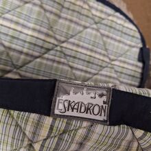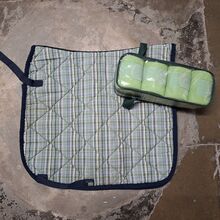 Eskadron-sadelpad med rutor och bandage - Säljer detta begagnade schabrak med nya bandage från Global.