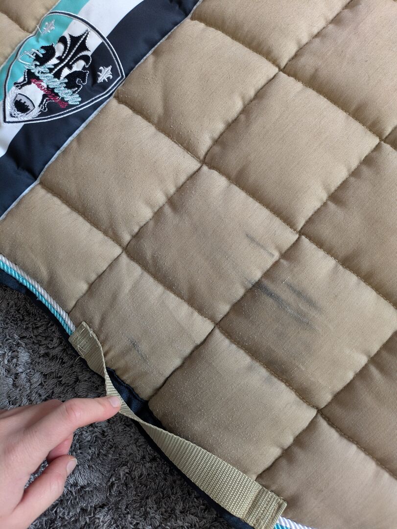 Eskadron sadelunderlägg DR Full WB beige - Den har tvättats nyligen och är i gott skick. Lätt missfärgning på sadelområdet (se de två sista bilderna)