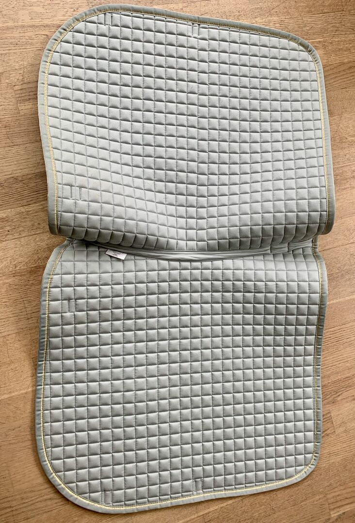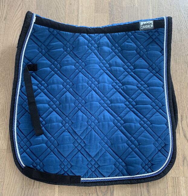 Eskadron sadelunderlag - Eskadron schabrak i grått med guldpiping. Storlek DL