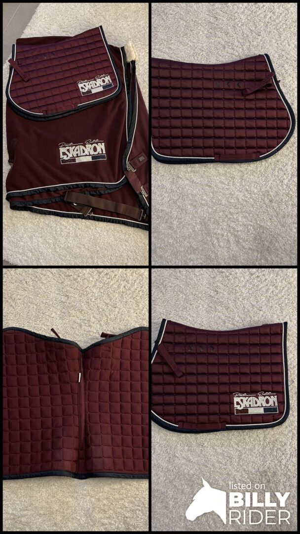 Eskadron schabrakset (VS) + svettmatta (145) mörkröd, Platinum Edition - Mörkrött Eskadron schabrak (snitt VS) i storlek varmblod och svettmatta i storlek L (145), Platinum Edition. Mycket bra skick, knappt använt (se bilder). Betalning via Paypal möjligt. Ingen garanti, garanti, retur, som privat försäljning.