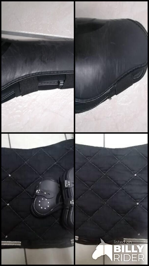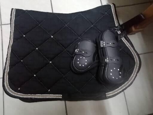 Eskadron-set - Hej, Jag säljer ett Eskadron-sadelunderlag och matchande damasker + stövlar. Sadelkudden är i superbra skick, damaskerna visar små tecken på slitage på insidan (se bilder). Kan också köpas separat. Sadelunderlag: 55€ Strumpbyxor: 25€ Kontakta mig om du är intresserad. Plus fraktkostnader