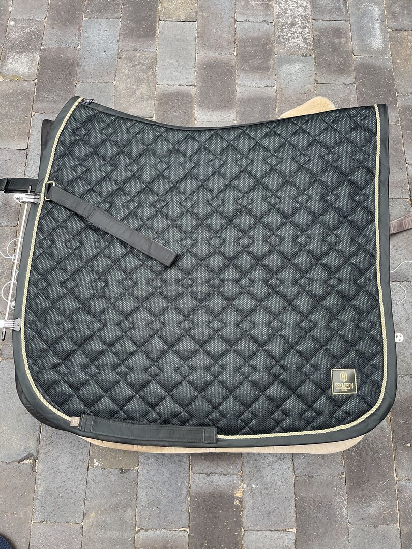 Jag säljer mitt set från Eskadron i Antique Green som har burits 2-3 gånger. Setet består av hovklockor i XL, sadelunderlag av glitternät i DL och bandage i varmt blod. Varorna säljs endast som ett set och är otvättade. Det går fortfarande att ta bilder av bandagen.
