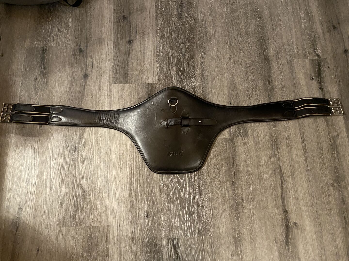 Eskadron Stud Girth Saddle Girth 130 - Jag säljer en begagnad men i gott skick grimma från Eskadron. Den är nyligen rengjord och smord, men det finns fortfarande en del hästhår kvar. Grimman har Elasik-insatser på båda sidor, vilket gör det lättare att grimma, min häst gillar också dessa bättre. De är inte slitna eller något annat. Grimman har några repor, men de syns på bilden. Dessa begränsar dock inte användningen av omkretsen på något sätt. Grimman är helt gjord av läder.