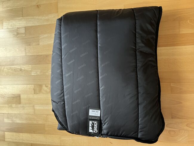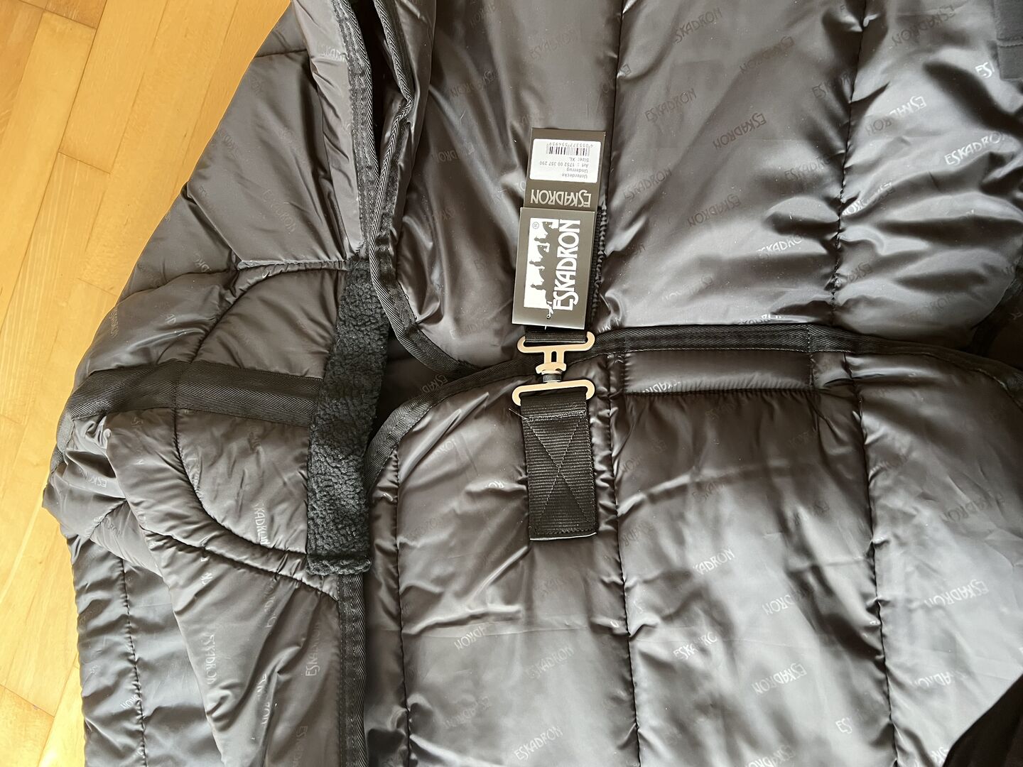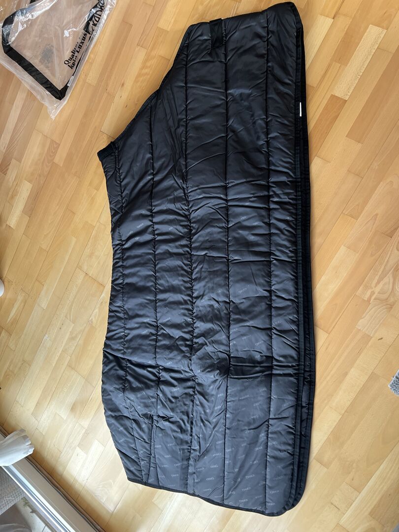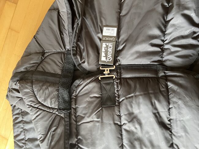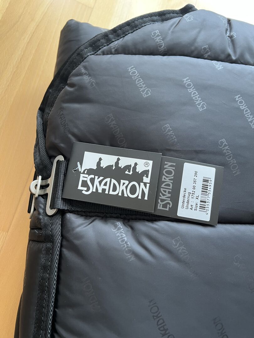 Jag säljer ett nytt Eskadron-täcke Thermo Poly 220g storlek XL i svart färg. Täcket är helt nytt och har aldrig varit på hästen. En bröststängning och en svansögla. Täcket är mjukt vadderat vid manken.