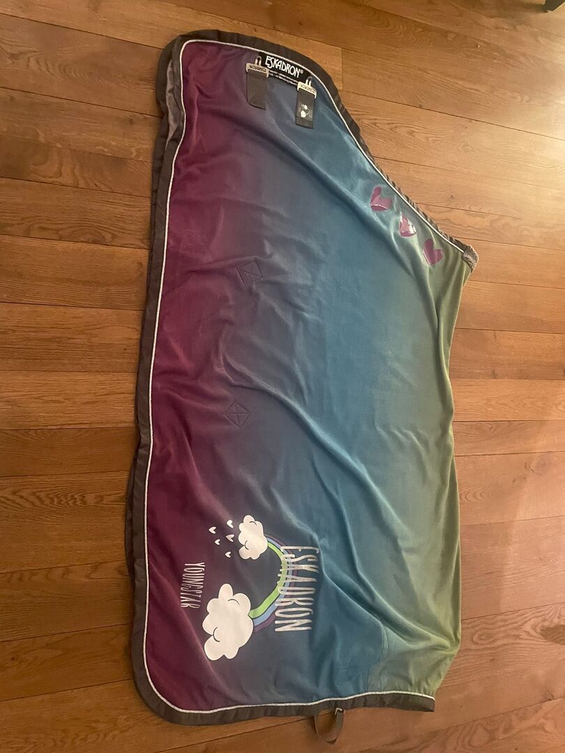 Eskadron youngstar set regnbåge ponny VS sadelunderlag filt storlek 135 - Hej på er, Vi säljer ett mycket välbevarat set från märket Eskadron. Schabraket är i storlek Pony Vs och är i mycket gott skick. Täcket är i storlek 135 och har normala tecken på användning. (Se bilder) Om du har några frågor, vänligen skicka oss ett meddelande.