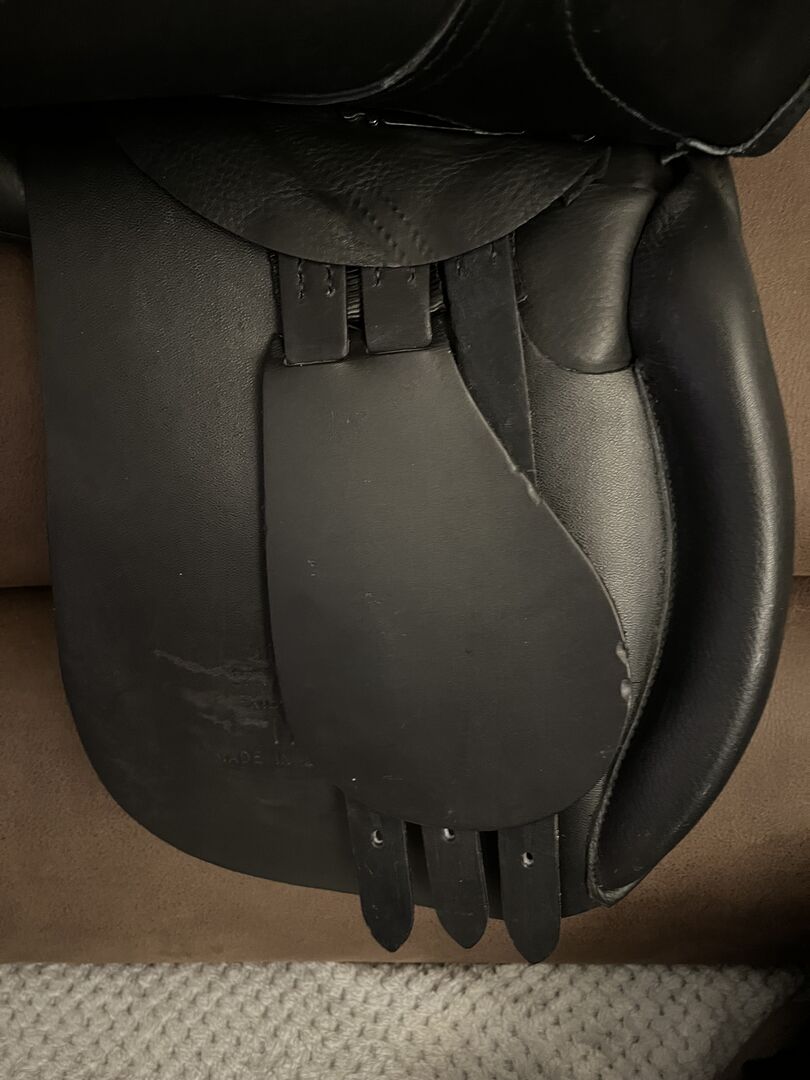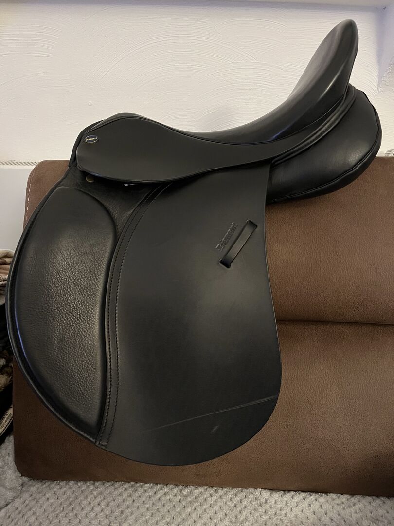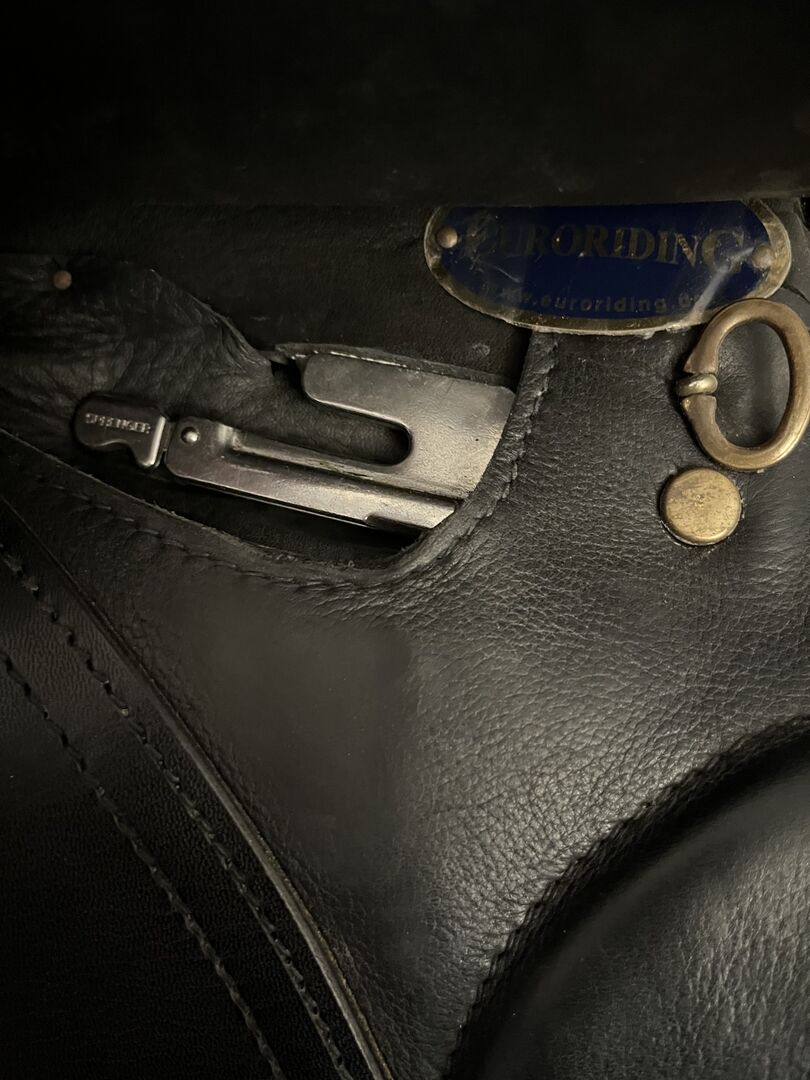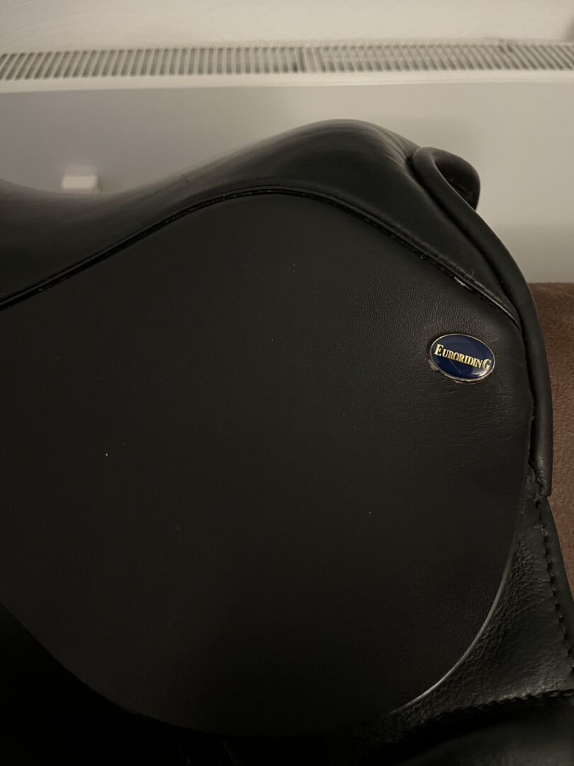 Euroriding Diamant VSD New Style 17" 3.0 Passform - Jag erbjuder en ny Euroriding Diamant VSD New Style till salu. Sadeln köptes ny av mig och har varit på hästen mindre än 20 gånger. Sadeln är så gott som ny och visar knappt några tecken på användning. Den har en repa på vänster sadelklaff (orsakad av ryttaren), men detta märks knappast. Dynorna är mjuka och i originalskick, sadeln har fortfarande den typiska nya lukten! Lädret är mjukt och välvårdat. Tillverkarens beskrivning: "Denna modell är utrustad med delade franska paneler och är därför särskilt lämplig för korta hästar. Diamant-sadelsortimentet har blivit välkänt genom rekommendationer och det exceptionellt attraktiva förhållandet mellan pris och prestanda. Vid tillverkningen används det bästa engelska sadellädret. Den flexibla sadelgjorden av trä och stålfjädrar gör att ryttaren kan röra sig med hästen på bästa möjliga sätt. Den handfyllda ullpanelen säkerställer optimal anpassning till hästens rygg."