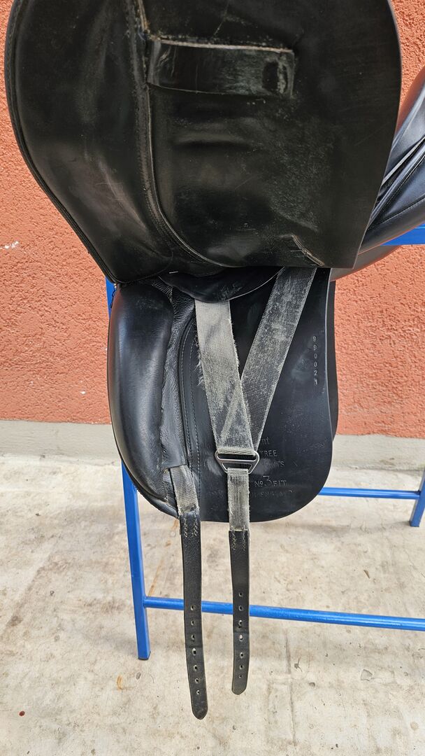Euroriding Diamond dressyrsadel 17 tum Passform 3 - Bjuder på en välbevarad dressyrsadel Euroriding Diamant, gammal modell med röd knapp. Kammaren är Fit 3 och sitsen 17". Sadeln har alltid behandlats med omsorg, smörjts regelbundet. De tydliga tecknen på användning kan ses på bilderna. Den har långa gördelremmar, som kan bytas ut vid behov, men som inte störde mig. I slutet av förra året kläddes sadeln om och har inte använts mycket sedan dess.