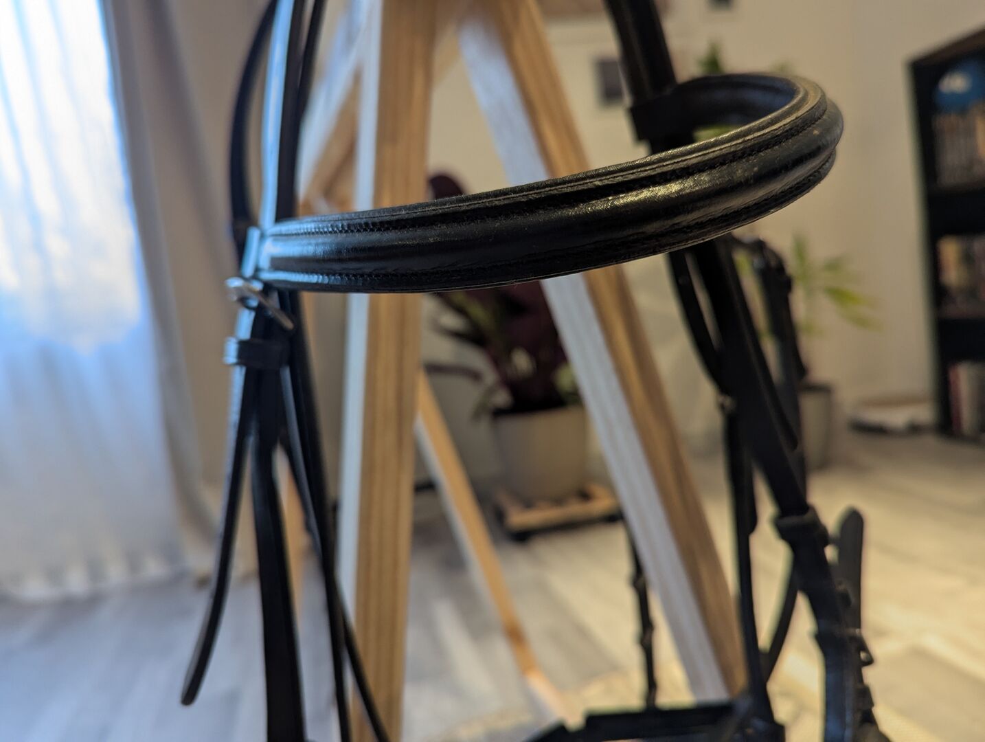 På grund av min övergång till westernridning använder jag det inte längre och det är välkommet att hitta ett nytt hem. Hon säljs utan bett, men nosgrimma och tyglar ingår.