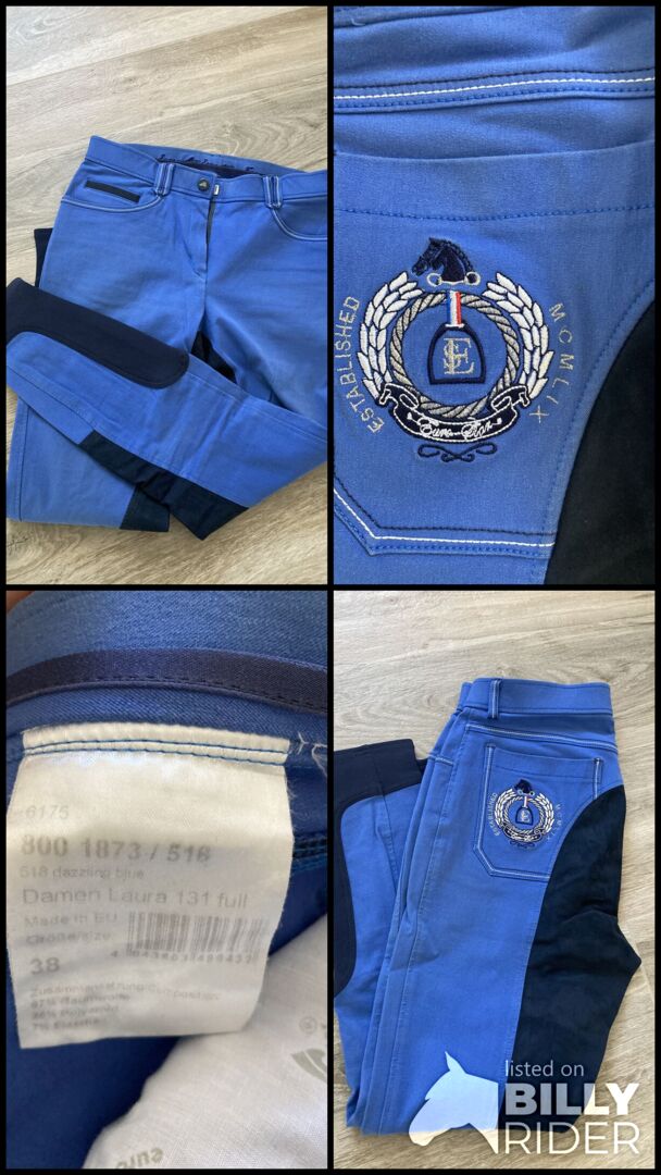 EuroStar ridbyxor, full sits storlek 38 - Euro Star ridbyxor "Laura" storlek 38, blå, knappt slitna. Fullständig plats. Har legat oanvänd i garderoben länge... synd för det!