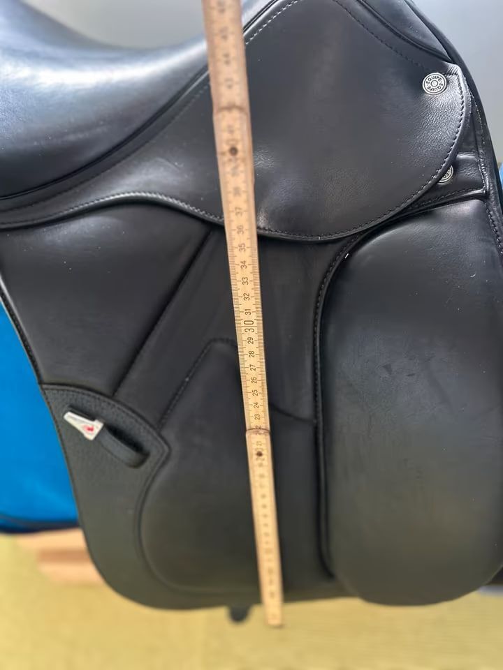 Exklusiv Selleria Equipe Bocelli dressyrsadel 16,5 - Jag säljer min högkvalitativa Selleria Equipe Bocelli dressyrsadel eftersom min ponny har sålts. Sadeln kommer från det italienska premiummärket Selleria Equipe och imponerar med maximal komfort, fint utförande och utmärkt passform. Detaljer: Modell: Bocelli Storlek: 16,5 tum (Equipe skräddarsyr något mindre - perfekt för bredare ponnyer eller kompakta hästar) Träd: Träträd Kammare: bredare än standard - perfekt för kraftigt byggda hästar Paneler: M (normal höjd) Fyllning: latex Färg: svart Tillverkningsår: 2022 Skick: Sadeln är knappt använd, praktiskt taget som ny och har aldrig ändrats, breddats eller justerats. Den erbjuder en mycket bekväm, djup sits och en fantastisk ridupplevelse. Vänligen notera: Stigbyglar ingår inte. Det finns inget sadelpass eftersom Selleria Equipe inte utfärdar ett som standard - Equipe kan kontaktas direkt vid behov. Originalfaktura tillgänglig. Visning och provridning möjlig efter överenskommelse.