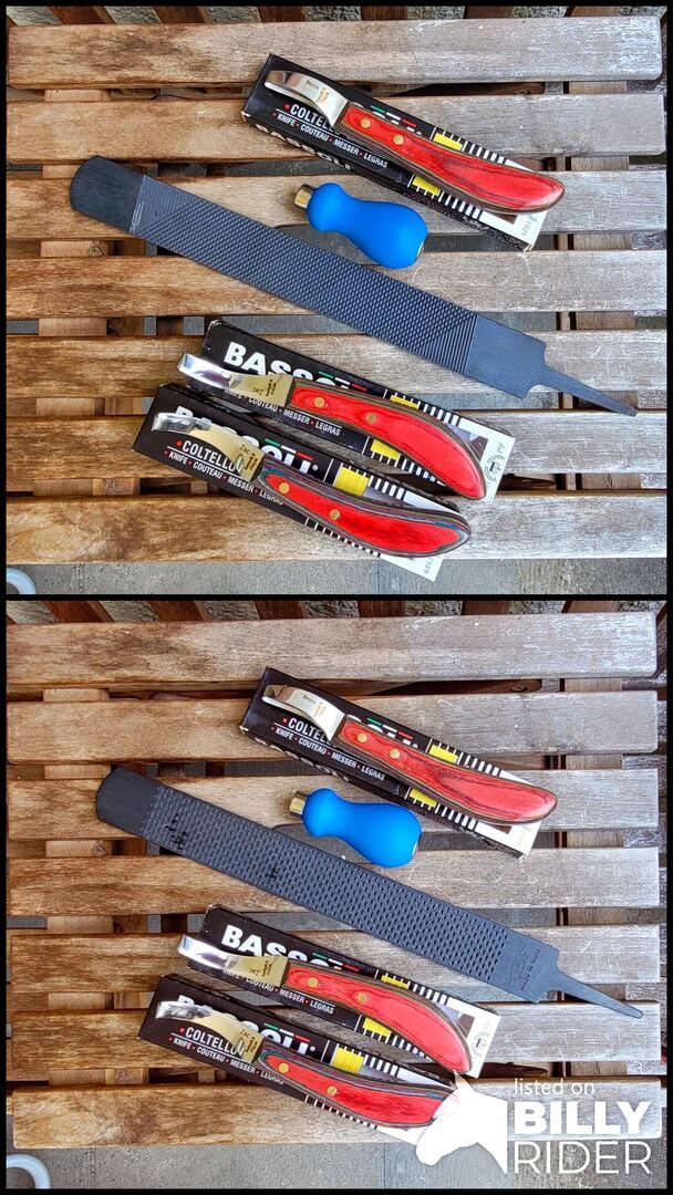 Exklusivt hovtrimningskit med hovrasp och hovknivar Bassoli