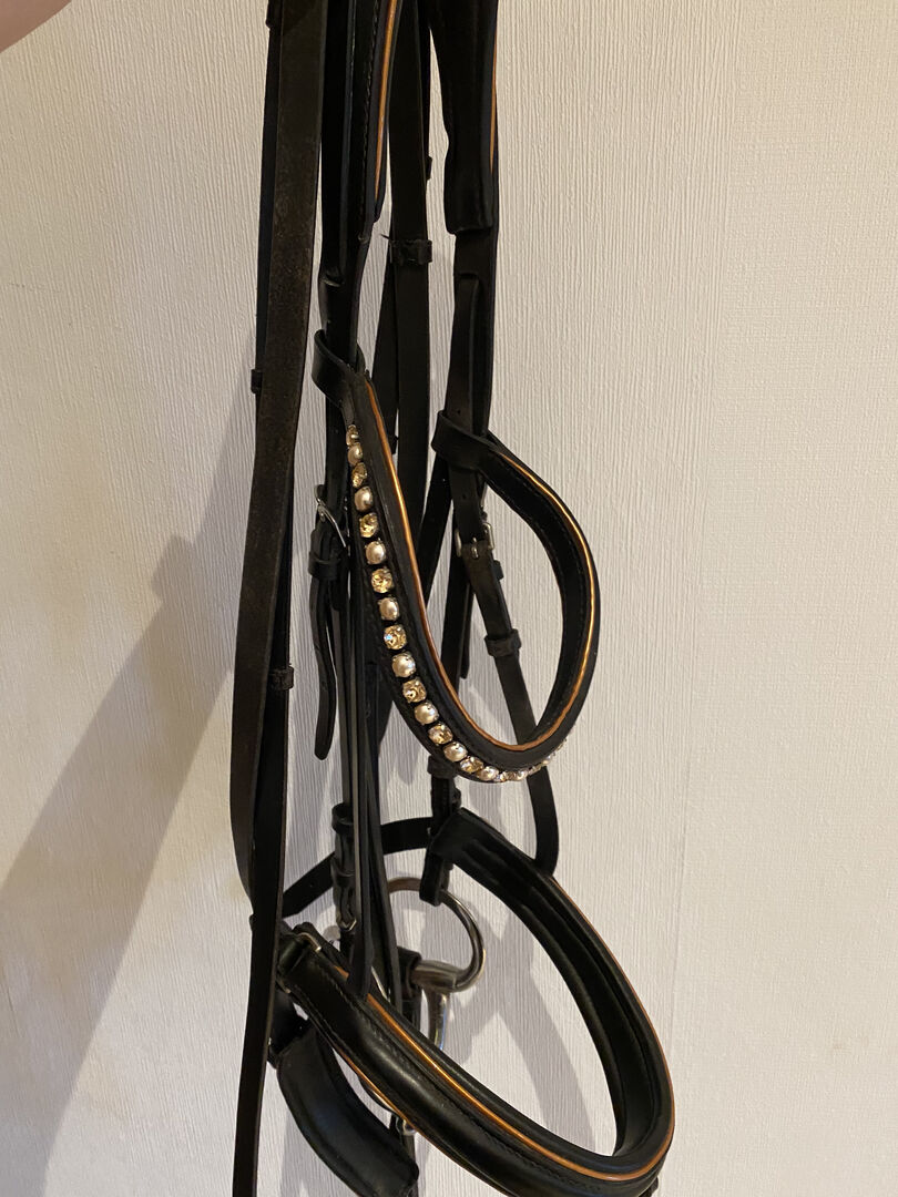 Extraordinärt Döbert-Trense - Jag säljer denna vackra och exklusiva träns från Döbbert i WB (inklusive bett), som tyvärr inte passar min nya häst. Sömmen är alldeles för bra för att lämnas i källaren för att samla damm. Mycket högt nypris (390€). Tyvärr har min gamla häst gnuggat sig med tränsan en gång, så det finns repor på nosbandet, som man bara kan se på nära håll. Kontakta mig om du har några frågor!