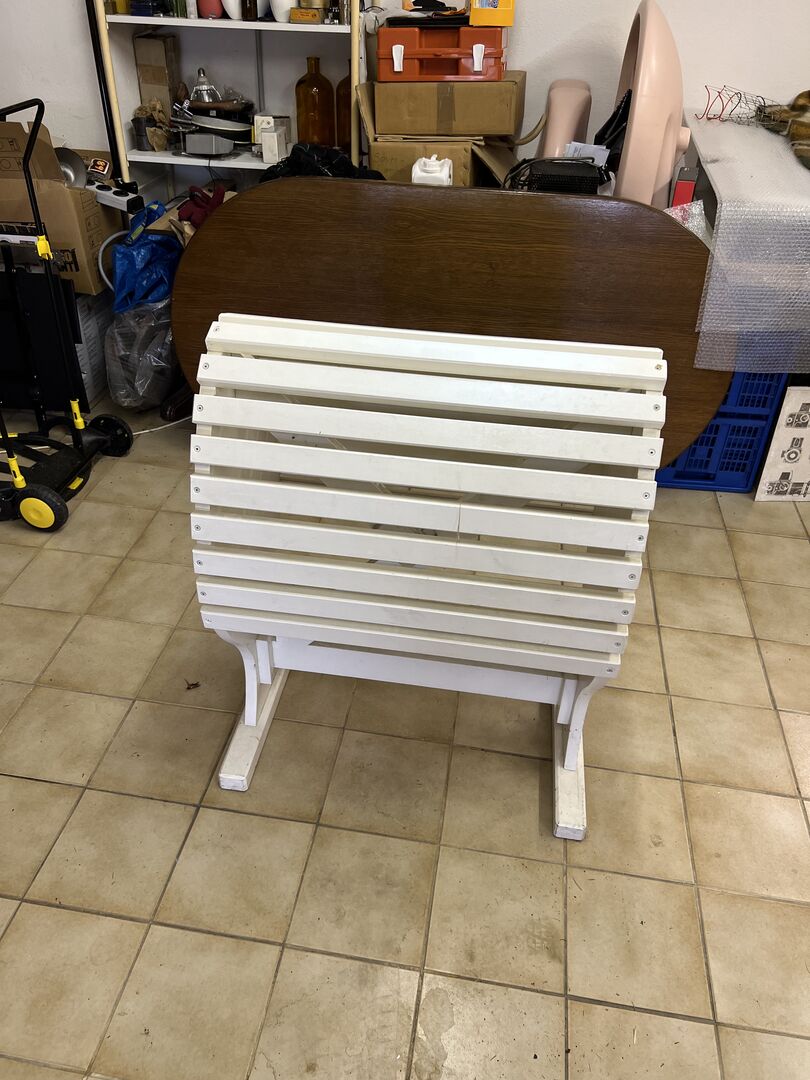 Fäste för sadel - Mycket tungt sadelställ i trä (ca 30-40 kg), vitt. Eftersom träribborna skruvas fast på avstånd kan sadeln eller schabraket (sadelpad) torka bra.