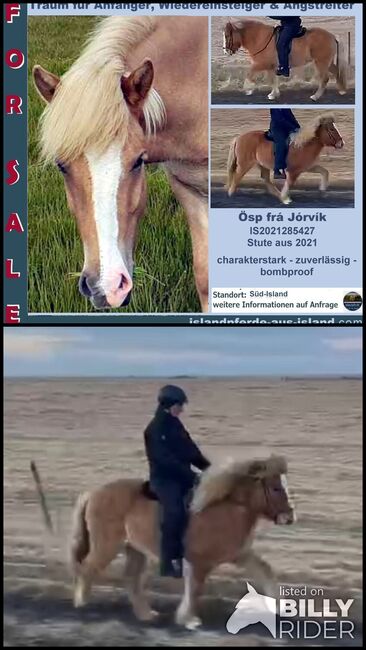 Ösp är ett fantastiskt sto: oklanderlig karaktär, lätt att hantera, okomplicerad att hantera. Med bra storlek, av den gamla typen med stark exteriör och vackra gångarter. Hon har ett medeltemperament under sadel och är lätt att rida - av nästan alla ryttare. Eftersom hon var i träning fram till december kan den nya ägaren börja arbeta med henne strax efter export. Ösp ser fram emot en ridpartner som tycker om långa ridturer eller terrängridning. Hon skulle också vara en bra häst för ett mor-dotter-team, till exempel, eftersom hon är en bra häst för en dotter att lära sig på om hon rids på ett förnuftigt sätt. Eftersom hon är mycket försiktig att hantera är hon också en utmärkt ridhäst för barn. =========================